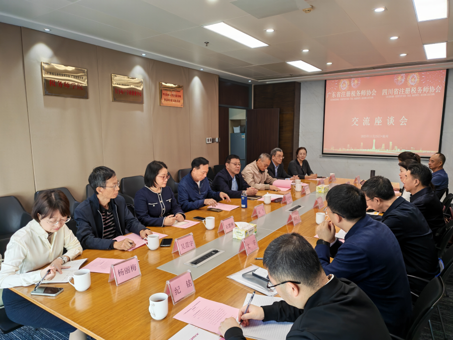 2025年11月25日,四川省注册税务师行业党委副书记、四川省注册税务师协会会长董光晖率一行7人调研组来访广东省注册税务师协会考察交流。双方以“加强跨区域交流,推动税务师行业高质量发展”为主题,围绕行业党建、业务转型、会员服务、自律监管等核心议题展开深入研讨。