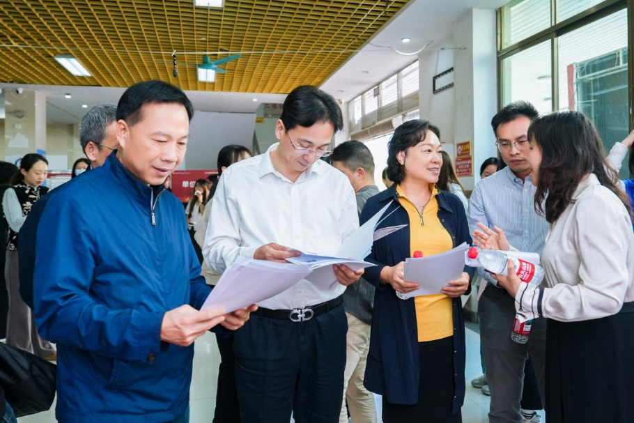 深化校企协同合作,共同构筑良好人才生态。省税协副会长赵平、高峰、伍建兰,副秘书长傅绪桥,以及广东财经大学党委常委、副校长张凯等领导亲临招聘会现场,悉心指导相关工作。在招聘展位前,各位领导认真翻阅招聘简章与求职简历,详细询问招录标准和人才需求情况,还积极与前来咨询的学生交流其求职意向,通过实地考察精准掌握人才供需动态。